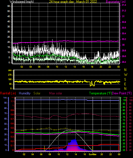 Maximum dewpoint = 53.1°F on day 01 at time 14:05