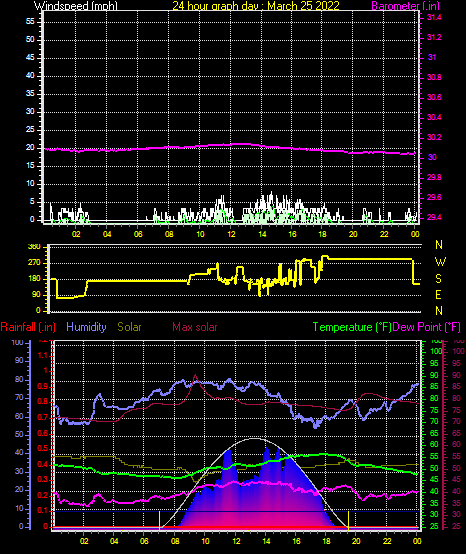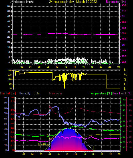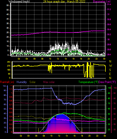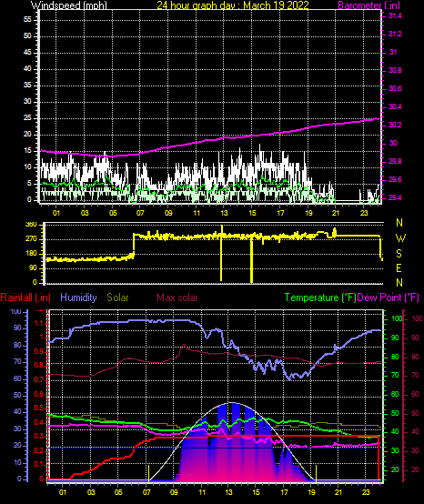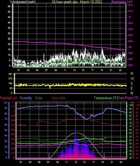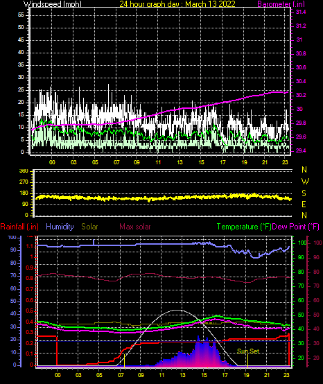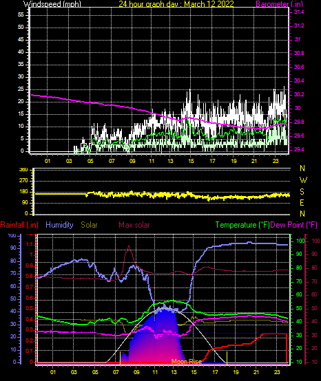 Maximum windspeed = 18.4 mph from 170°( S ) on day 12 at time 23:44