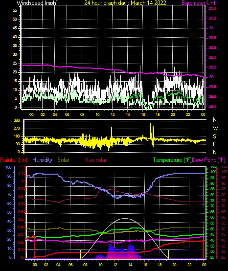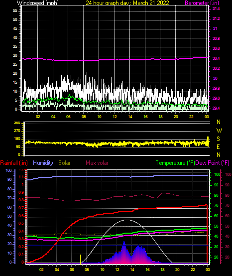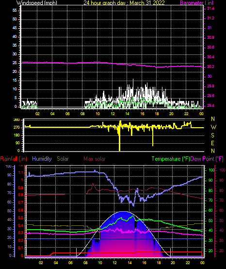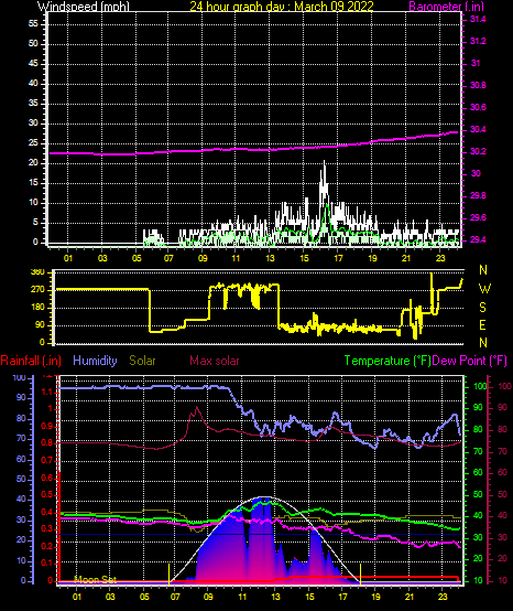 Maximum windspeed = 9.2 mph on day 30 at time 16:46