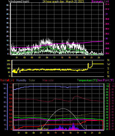 Maximum windspeed = 17.3 mph on day 31 at time 19:39