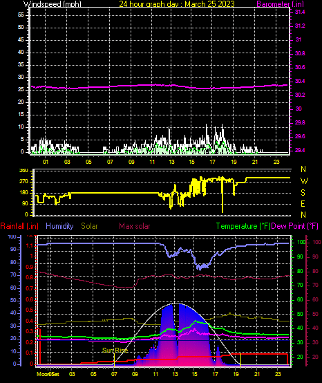 Maximum windspeed = 17.3 mph on day 02 at time 07:18