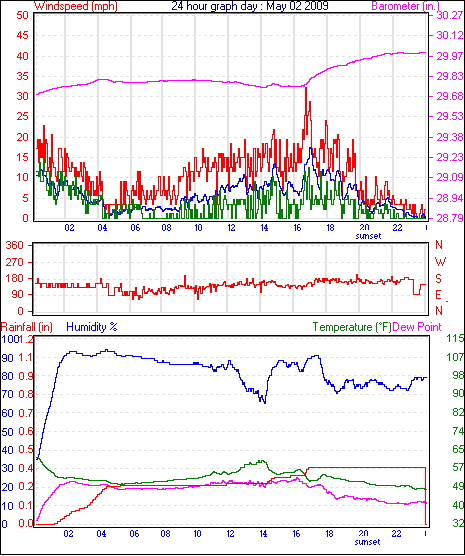 Maximum windspeed = 24.2 mph on day 02 at time 16:56