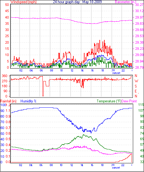 Maximum windspeed = 18.4 mph on day 04 at time 22:33