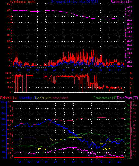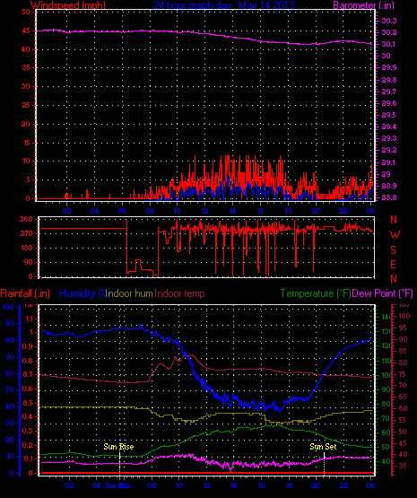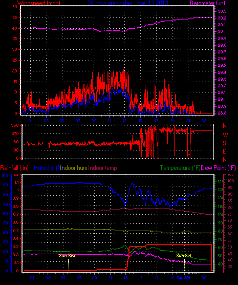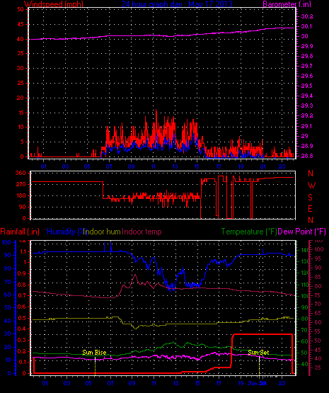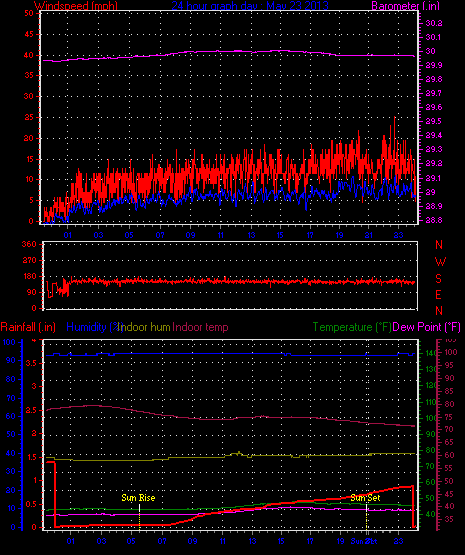 Maximum windspeed = 15.0 mph from 292°(WNW) on day 02 at time 22:06
