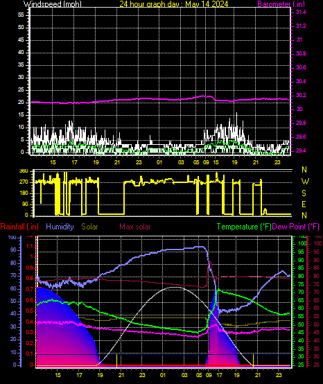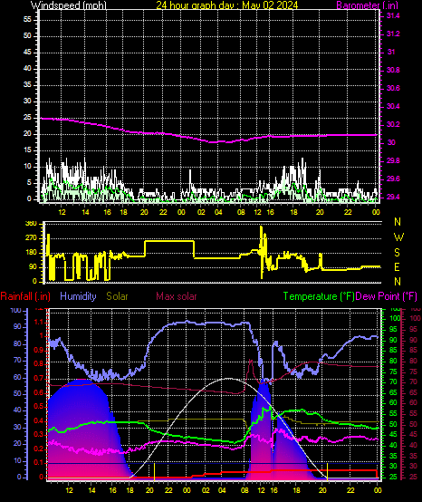 Maximum dewpoint = 46.3°F on day 30 at time 14:27