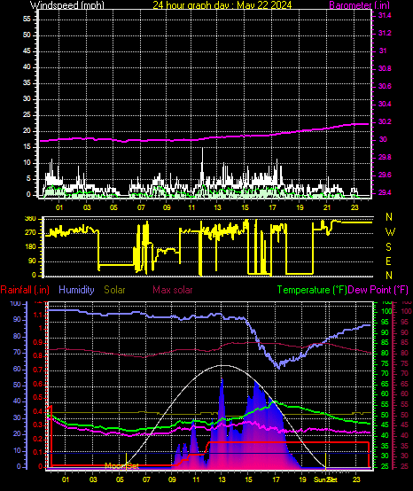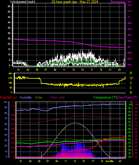Maximum gust speed = 21.9 mph from 135°( SE) on day 06 at time 03:34