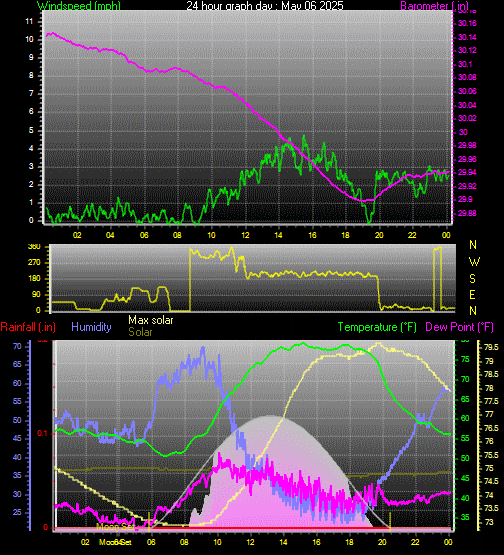 Maximum windspeed = 6.9 mph on day 02 at time 16:18