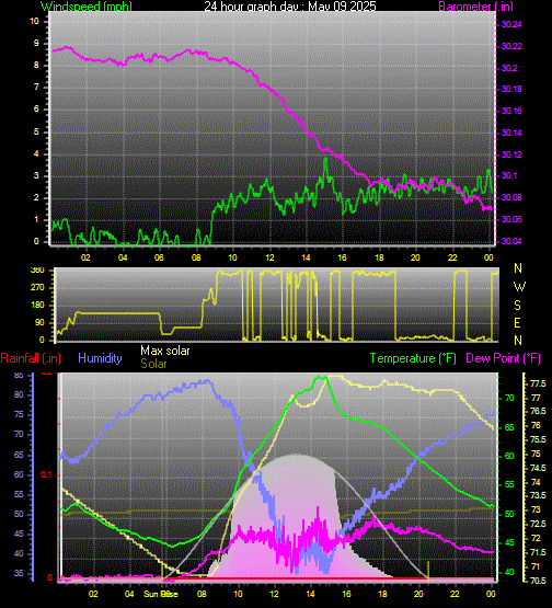Maximum gust speed = 9.2 mph from 286 °(WNW) on day 30 at time 15:13