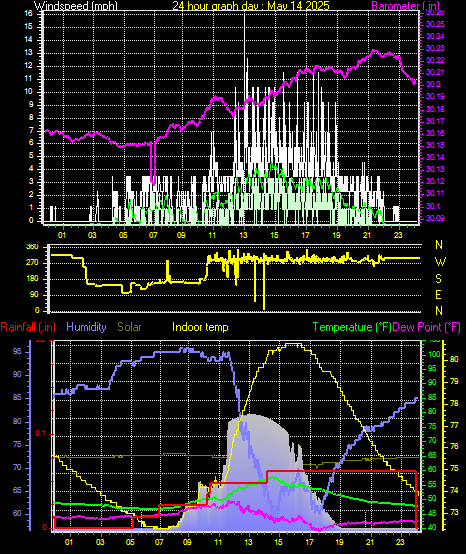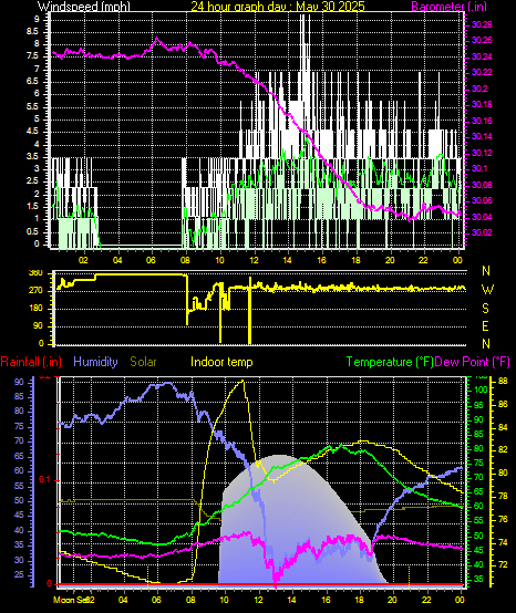 Maximum pressure = 30.264 in. on day 30 at time 06:19