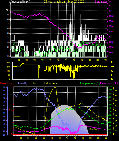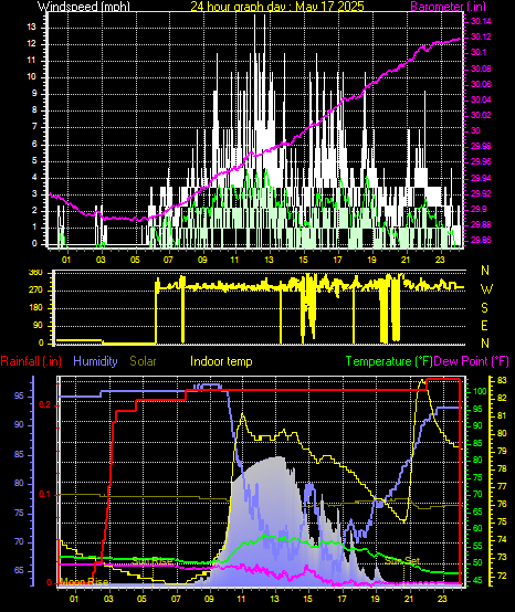 Maximum windspeed = 5.8 mph on day 30 at time 14:56
