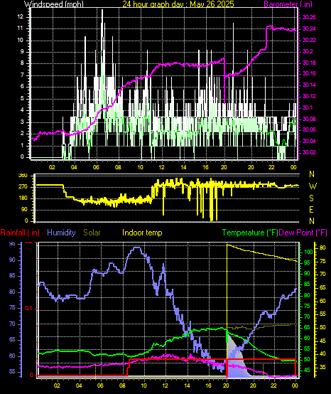 Maximum rain per minute = 0.02 in on day 26 at time 17:39