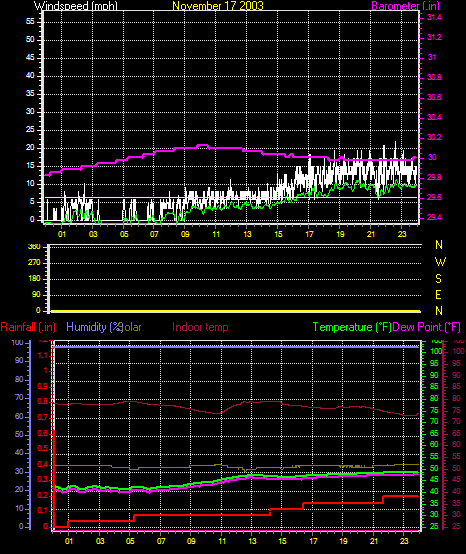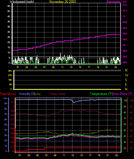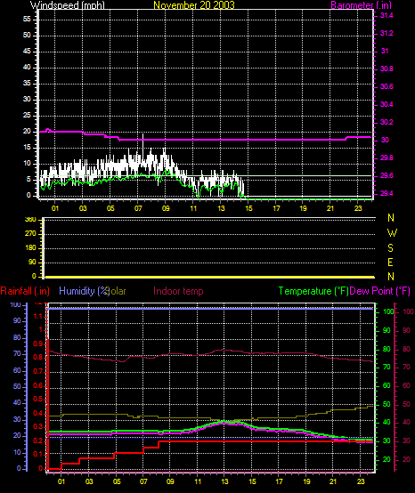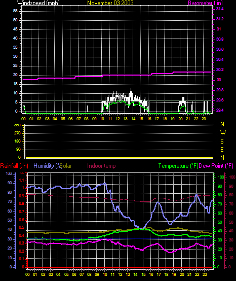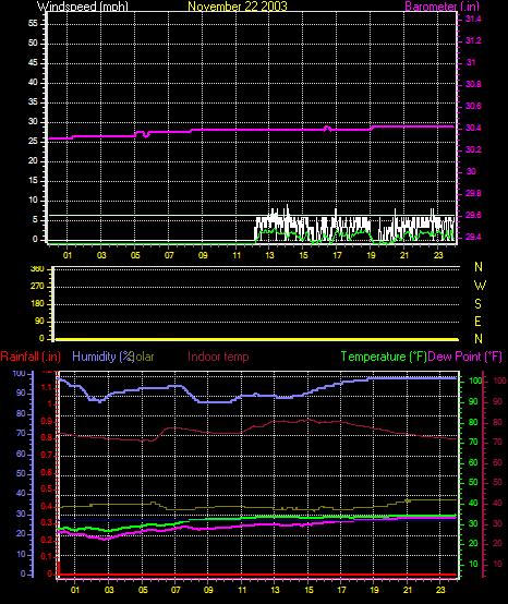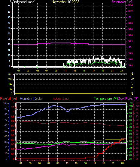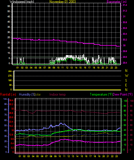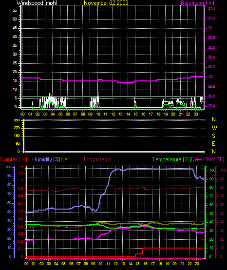 Minimum dewpoint = 34.6°F on day 30 at time 6:27