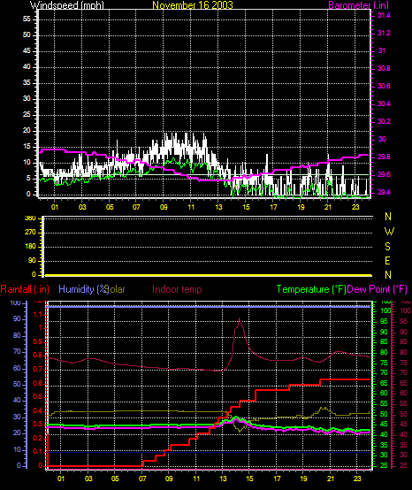 Maximum rain per minute = 0.04 in. on day 30 at time 18:40