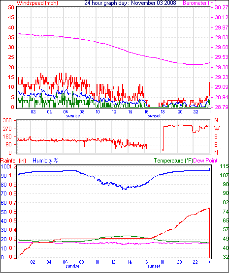 Maximum rain per minute = 0.030 in on day 02 at time 03:39