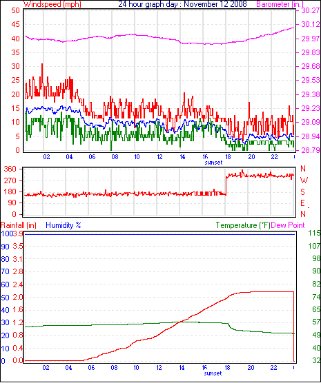 Maximum windspeed = 6.9 mph on day 30 at time 23:16