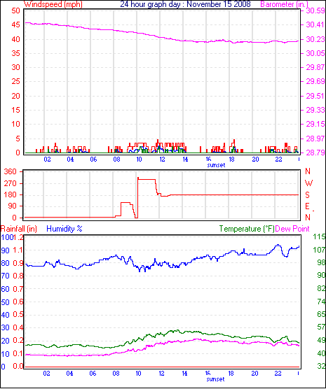 Maximum gust speed = 10 mph from 180 °( S ) on day 30 at time 23:16