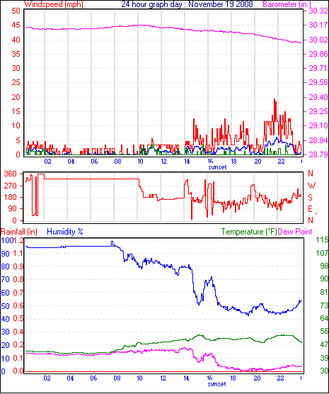 Maximum gust speed = 20 mph from 315 °( NW) on day 04 at time 03:24
