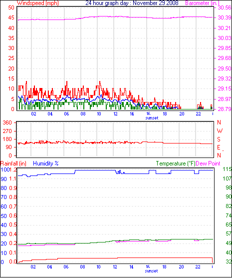 Minimum temperature = 47.6 °F on day 29 at time 07:27