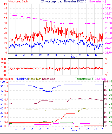 Maximum windspeed = 21.9 mph from 169°( S ) on day 01 at time 06:14