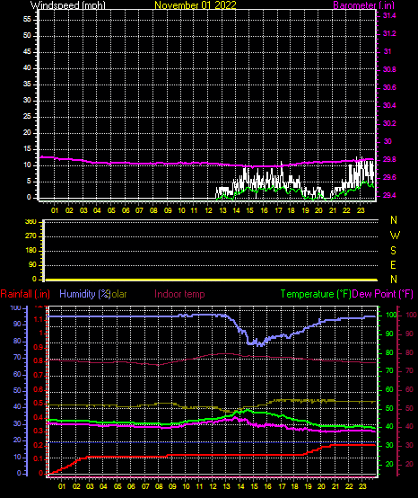 Minimum dewpoint = 33.7°F on day 30 at time 22:02