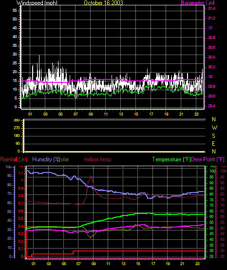 Maximum windspeed = 16.1 mph from 171°( S ) on day 16 at time 16:51