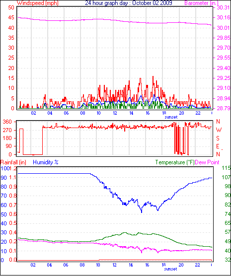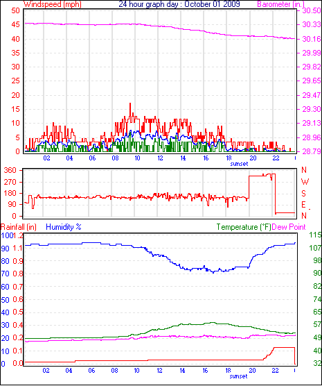 Maximum windspeed = 16.1 mph on day 30 at time 00:35