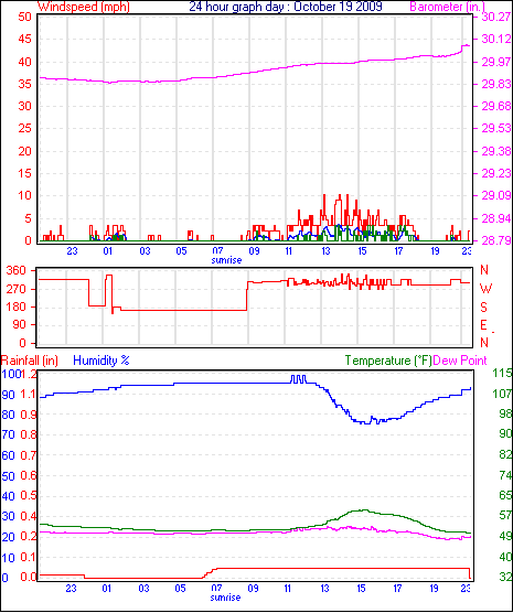 Maximum windspeed = 19.6 mph on day 30 at time 22:33