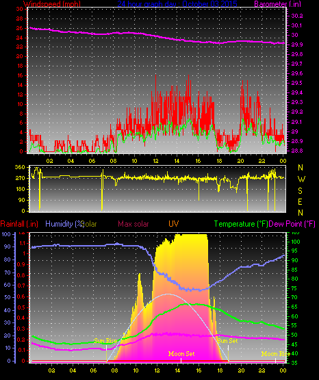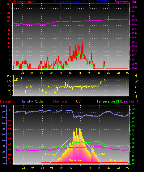 Maximum windspeed = 15.0 mph on day 30 at time 22:36