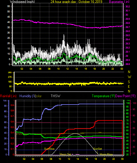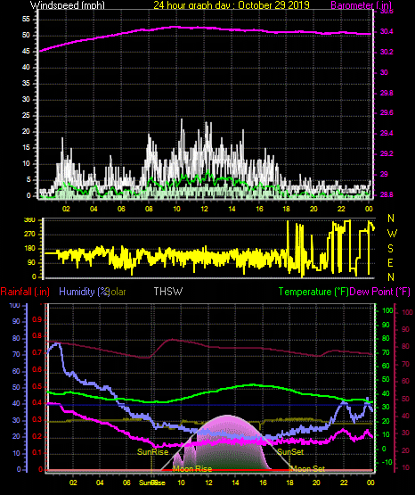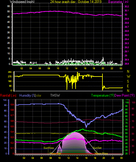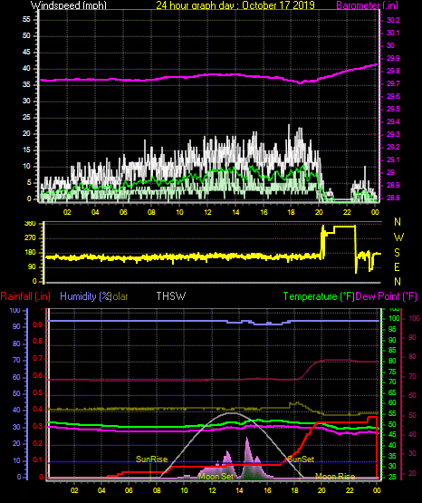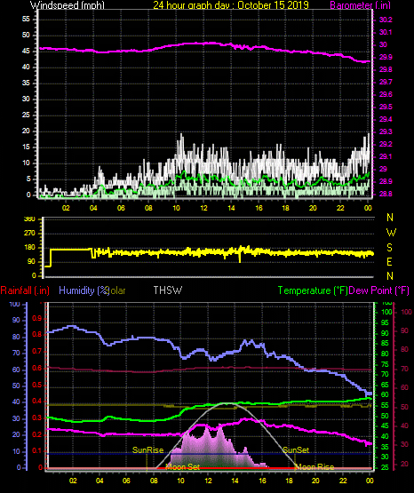 Maximum windspeed = 15.0 mph from 124°( SE) on day 19 at time 01:55
