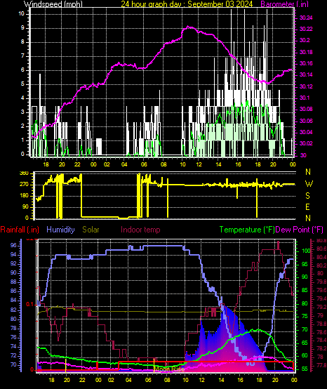 Maximum rain per minute = 0.00 in. on day 30 at time 23:57